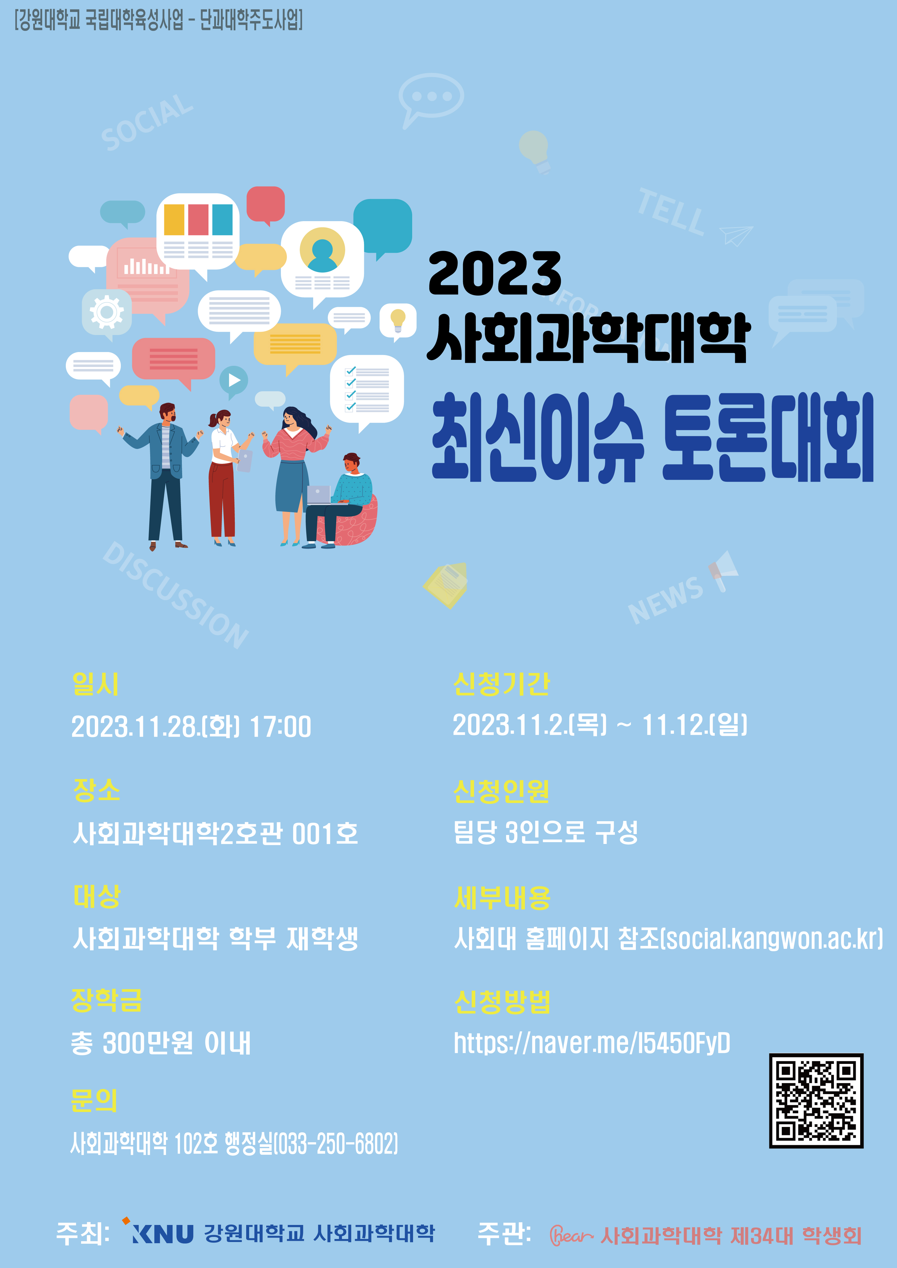사회과학대학 최신이슈 토론대회를 다음과 같이 안내드리니,